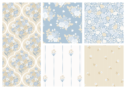 This collection is inspired by the timeless charm of a grandmother’s garden—where every flower feels familiar and full of warmth. Garden Cottage captures the nostalgia of cozy afternoons among blooming roses, wild daisies, and climbing vines, with patterns that evoke comfort, simplicity, and the beauty of nature at home. Designed to feel both fresh and nostalgic, the collection brings a touch of cottage garden magic into modern spaces.